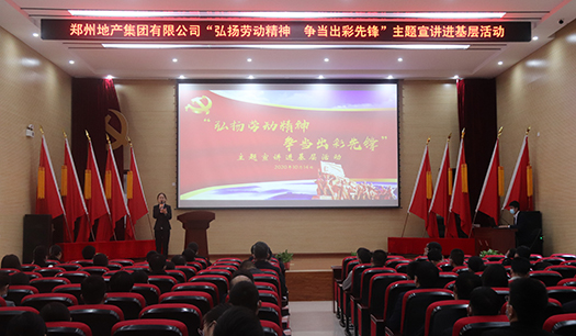 為進一步深化市國資委“黨的創新理論萬場宣講進基層”活動,培育和踐行社會主義核心價值觀,10月14日下午,鄭州地產集團“弘揚勞動精神 爭當出彩先鋒”主題宣講活動在西流湖公司中原新區聯合黨委基層黨校成功舉辦。集團宣講團成員、西流湖公司黨支部、鄭地發展公司員工及中原新區項目參建單位代表共120余人參加活動。