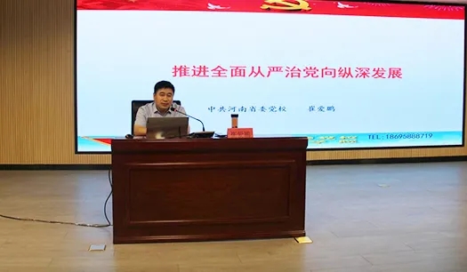 隨后,河南省委黨校崔愛(ài)鵬教授作了題為《推進(jìn)全面從嚴(yán)治黨向縱深發(fā)展》的專題培訓(xùn)。培訓(xùn)中,崔愛(ài)鵬教授從深刻理解新時(shí)代全面從嚴(yán)治黨向縱深發(fā)展的重大意義、全面把握新時(shí)代黨的建設(shè)的總要求、貫徹落實(shí)習(xí)近平總書(shū)記關(guān)于全面從嚴(yán)治黨的重要論述三個(gè)方面進(jìn)行了全面剖析和深入解讀,以史實(shí)為依據(jù),深入淺出,娓娓道來(lái),使大家充分認(rèn)識(shí)到,“嚴(yán)”是立黨的初心品質(zhì),是治黨的鮮明特色,也是強(qiáng)黨的經(jīng)驗(yàn)優(yōu)勢(shì)。堅(jiān)持從嚴(yán)治黨,更是我們黨克服一切艱難險(xiǎn)阻、完成歷史使命的重要政治優(yōu)勢(shì),為集團(tuán)學(xué)習(xí)黨史、了解黨史,進(jìn)一步做好黨風(fēng)廉政建設(shè)和作風(fēng)建設(shè)工作提供了指南。