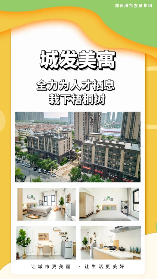 近年來,城發美寓在市房管局的大力支持下,積極圍繞高品質、服務型的標準,強力推進人才公寓建設的品質提升。半年內,城發集團美寓系列的嵩山美寓、中州美寓、春藤美寓、紫辰美寓、鼎盛美寓、書香美寓等一批人才公寓紛紛建成。截至目前,累計為鄭州市人才公寓等租賃住房提供4200余間。城發美寓的高品質人才公寓正成為吸引鄭州市人才的“新標簽”。