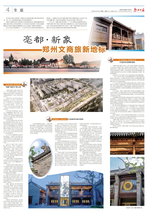 6月18日,“亳都·新象 城市復興”——2024媒體走進亳都活動舉辦,傳承鄭州城市文脈,和歷史風貌一脈相承,形成了充滿中原特色的文化商業(yè)街區(qū)。現(xiàn)代的文化商業(yè)場景,融入了本地街巷肌理、空間特色和中原文化元素。歷史與現(xiàn)代在這里相遇,碰撞出獨一無二的火花。
