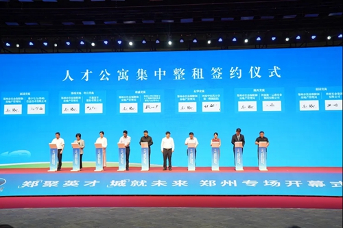 下午,第七屆中國·河南招才引智創新發展大會鄭州專場盛大開幕。在開幕式上,舉行了人才公寓集中整租簽約儀式。