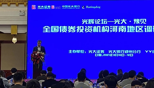 鄭州地產應主辦方光大證券、光大銀行鄭州分行邀請參加“光輝論壇—光大·豫見 全國債券投資機構河南地區調研對接會”。各方投資機構涵蓋銀行、證券、保險、信托、基金、資管等150余家投資人及河南省市20余家發行人云集此次調研會,鄭州地產作為市屬城投企業,參與此次調研匯報,積極發聲、廣泛宣傳,多角度彰顯區域發展潛力。